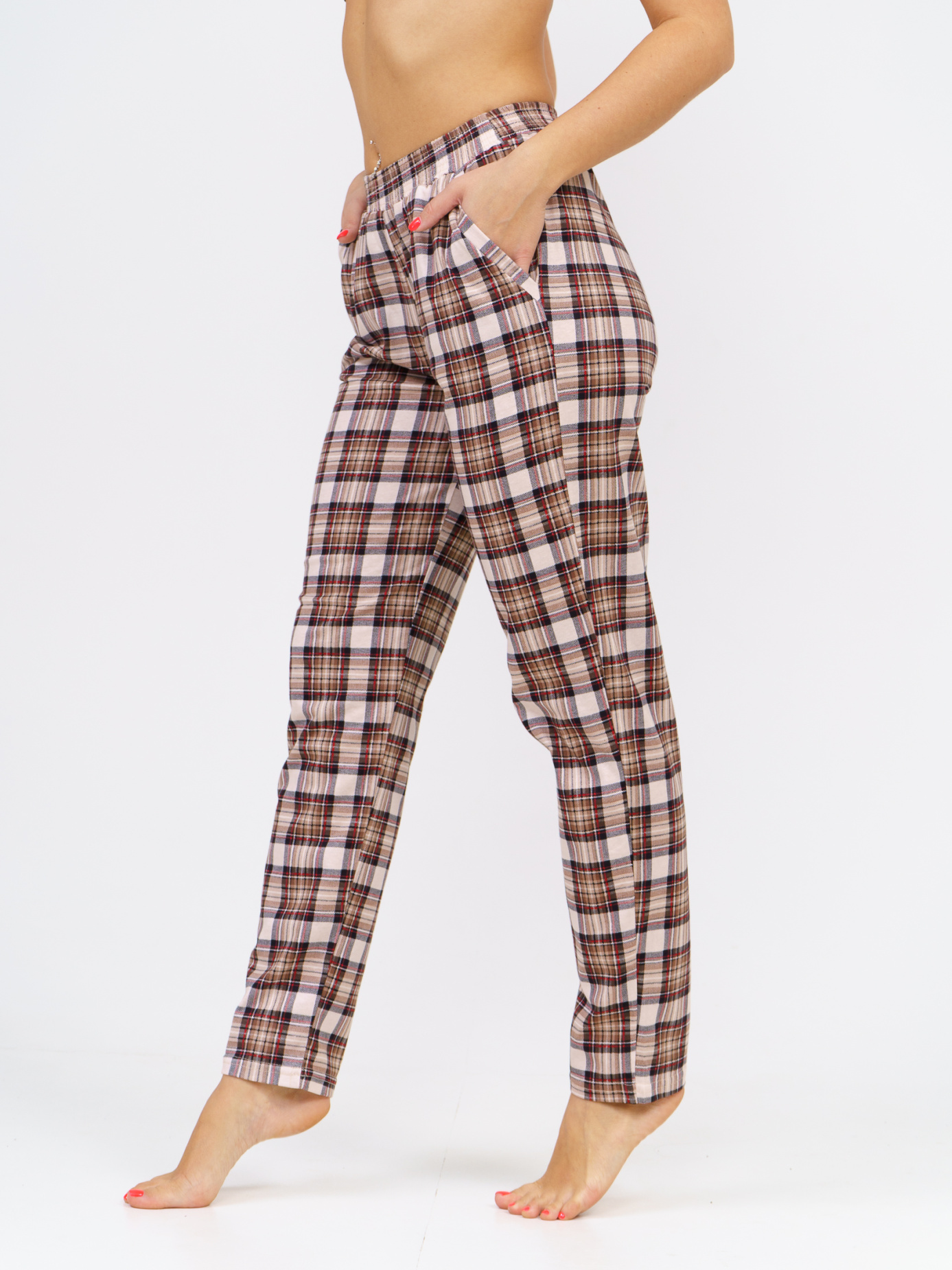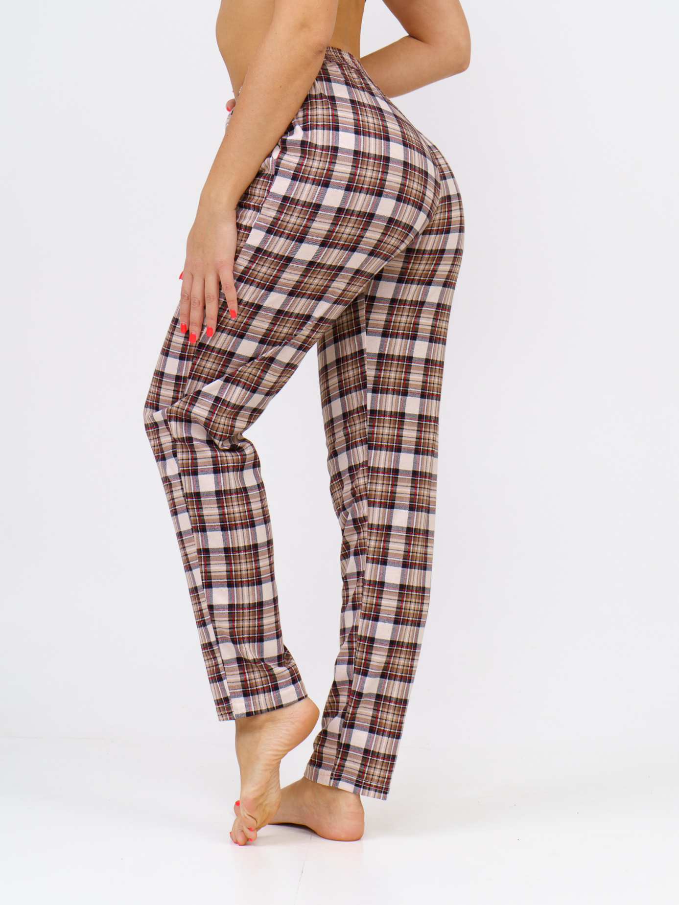 Женские брюки из мягкого хлопкового трикотажа – идеальное сочетание комфорта и стиля на каждый день! Свободный крой оверсайз с высокой талией на широкой резинке подойдет для любого типа фигуры: беременных, plus-size, подростков и девушек невысокого роста. Практичные боковые карманы с окантовкой и стильный принт в клетку делают эти брюки универсальными – их можно носить дома, в офисе и на прогулках. Легкий и дышащий материал особенно приятен в весенне-летний сезон, обеспечивая комфорт даже в теплую погоду. Богатая палитра расцветок от классической клетки до модных принтов позволит подобрать идеальный вариант.