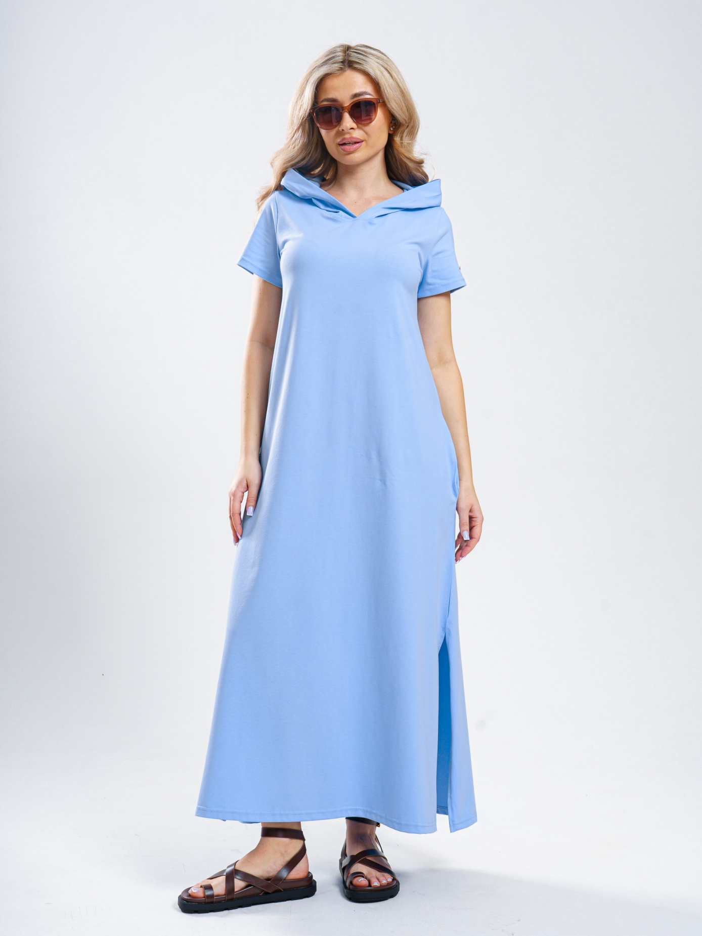 Стильное женское платье прямого кроя с капюшоном, сочетает в себе комфорт и элегантность. Длинное спортивное платье прямого силуэта с коротким втачным рукавом и ровным низом создано для современных женщин, ценящих удобство и стиль. Высокие боковые разрезы придают образу динамичность и женственность, а практичный капюшон делает модель еще более функциональной в повседневной жизни. Платье сшито из высококачественной хлопковой кулирки с лайкрой пенье — мягкой дышащей ткани, которая обеспечивает комфорт в жаркий летний день, прекрасно тянется, сохраняет форму и приятна к телу, что делает эту модель идеальной как для повседневной носки, так и для занятий спортом или вечерних прогулок. Серый оттенок платья подчеркивает утонченность и универсальность, позволяя легко сочетать его с разными стилями обуви — от классических лодочек до спортивных кроссовок. Воротник в стиле Y2K добавляет образу нотку ретро-гламура, а свободный оверсайз крой обеспечивает комфорт для девушек любого телосложения, включая беременных женщин. Спортивный шик и модный дизайн делают это платье отличным выбором для подростков и всех, кто ценит стильный современный образ. Это платье станет must-have в вашем гардеробе, подчеркивая индивидуальность и позволяя создавать разнообразные образы на все случаи жизни. Легкость, комфорт и стильный дизайн сочетаются в этой модели, делая ее по-настоящему универсальной — оно одинаково хорошо смотрится как на прогулке с друзьями, так и на неформальных вечерних мероприятиях, удовлетворяя даже самых взыскательных модниц. Современный крой и продуманные детали делают это платье идеальным выбором для тех, кто хочет выглядеть модно и чувствовать себя комфортно в любой ситуации